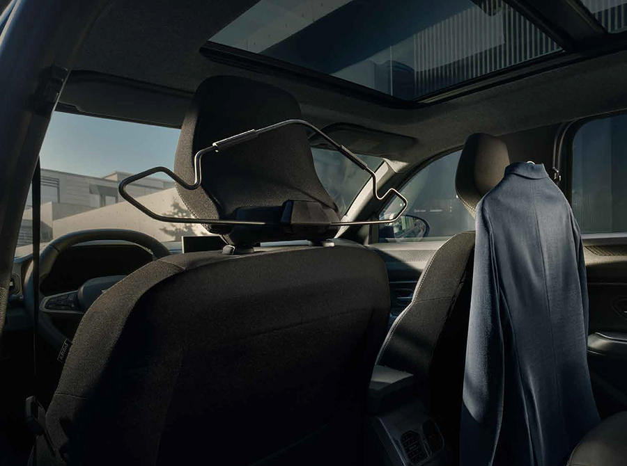 YouClip optimises your comfort and storage space with its clever multi-purpose attachment system for hanging the wide variety of accessories available in the range. These clip onto the mountings provided in the passenger compartment and boot: up to five mountings as standard. Two additional attachment points behind the headrests are available as an accessory to extend the possibilities to seven YouClip points.